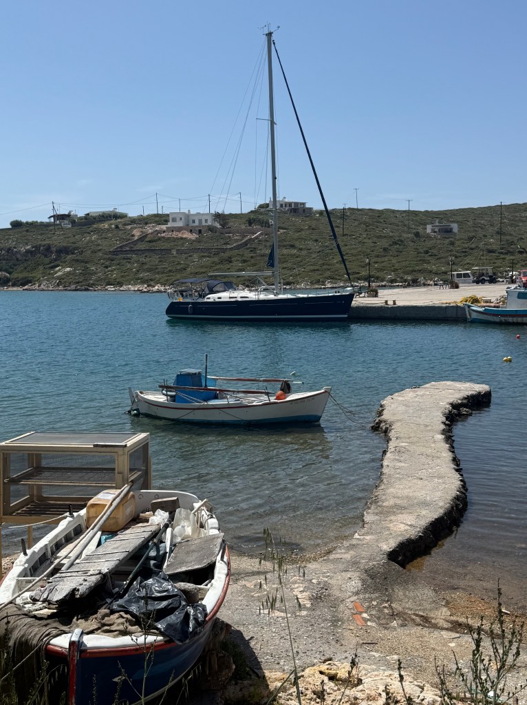 Nikolas has sadly decided to take a sabbatical. He is from Arki but his family are back in Poland and he has found running Taverna Nikolas exhausting and stressful. We missed him and his mother’s cooking but I guess it is probably time she retired and enjoyed the rest of her life without spending many hours in the kitchen every day. The taverna looks sad without the colourful model boats that his father made. His father was around, taking our lines, mending his nets and chatting to his mates in the back of Taverna Trypas.